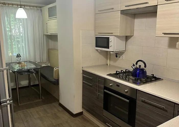 Für alle, die selbst kochen möchtern, bietet das Apartment komplette Küche, in der Sie Ihre eigenen Mahlzeiten zubereiten können. Die Bushaltestelle Shampanskyi liegt in lediglich 150 Meter Entfernung.